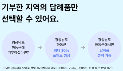실제로는 부담하는 비용 없이, 지역균형발전에도 기여하시고, 3만원 상당의 답례품까지 받아가시기 바랍니다.