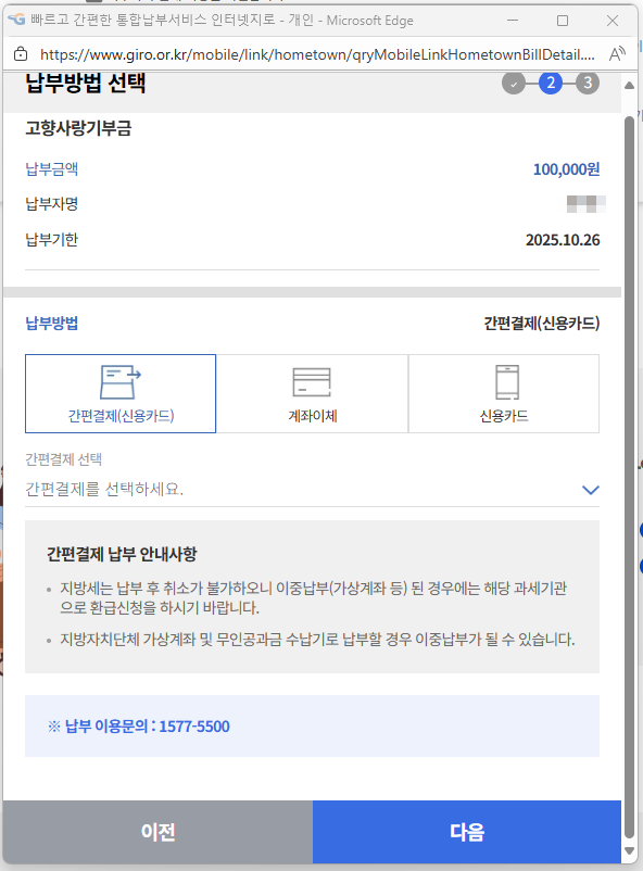 고향사랑e음에서 기부하고 답례품 받기 실전