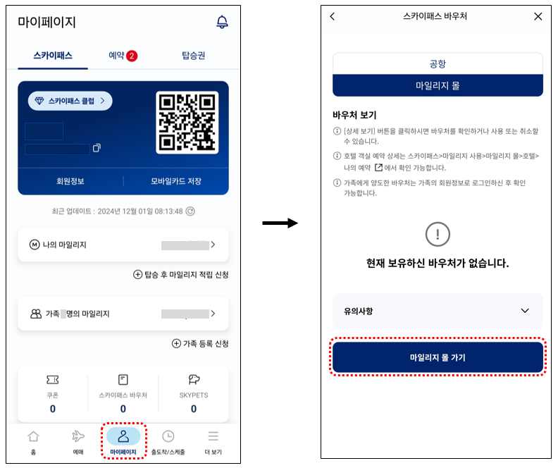 따라서, 가능하면 항공권으로 구매하시고, 불가피한 경우에는 마일리지 몰에서 여러 가지 물품이나 바우처를 구입해 보시기 바랍니다.
