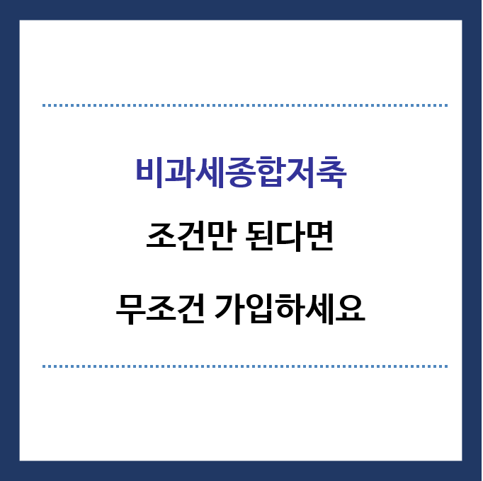 비과세종합저축은 특례조세특례제한법에서 정한 저축지원을 위한 조세특례 혜택입니다. 사람을 기준으로 인당 5천만원까지 이자소득 또는 배당소득에 대해서 소득세를 부과하지 않습니다. 1금융권이나 증권사에서 비과세종합저축 혜택이 있는 상품을 가입하시면 됩니다.