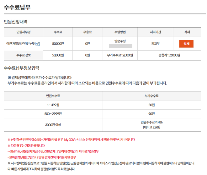사진을 첨부하시고, 수수료를 납부하면 신청이 완료됩니다.