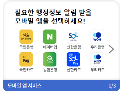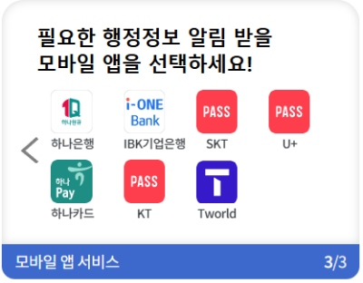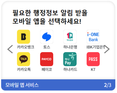 아래와 같이 다양한 앱 중에서 자주 사용하시는 앱을 선택하여 안내정보를 받아보실 수 있으니 이번에 가입해 두시면 편리합니다.