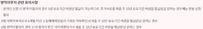 남자분들 중 병역 미필자의 경우, 5년 유효기간 여권만 발급이 가능합니다. 10년 유효기간 여권을 발급받으시려면 추가서류를 제출하고 방문 신청해야 한다고 합니다.