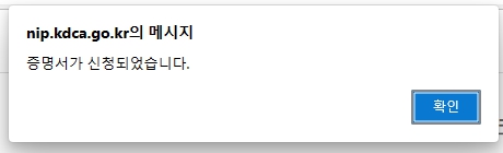 모두 입력하면 한 번 더 인증을 하게 됩니다. 인증을 완료하면 증명서 신청이 완료됩니다.