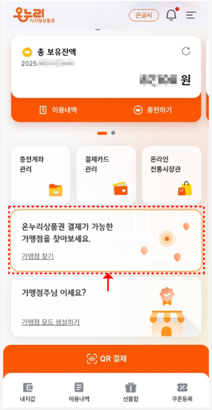 기존 온누리상품권앱은 '25.2월말에 종료되었습니다. 새로운 디지털온누리상품권앱을 설치하여 사용하셔야 합니다.
