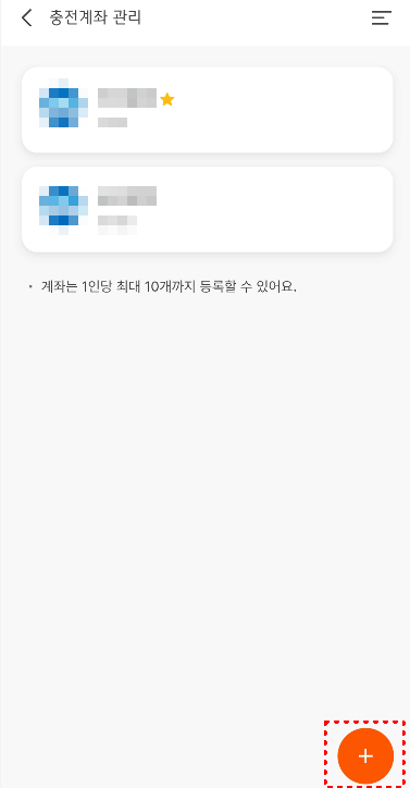 디지털온누리 앱 메인화면에서 '충전계좌관리' 메뉴로 들어가면 최대 10개까지 충전 계좌를 등록할 수 있습니다. 오른쪽 하단의 + 버튼을 누리고, 은행명, 계좌번호를 입력 후, 계좌확인을 한 후에 ARS 인증을 거쳐서 계좌를 등록할 수 있습니다.