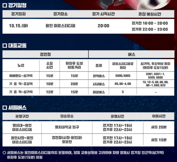 참고로, 경기 이후에는 신분당선 동천역까지 운행하는 전세버스를 4회 운영할 계획이라고 하니, 신분당선을 이용하여 집으로 가시리 좋은 분들은 참고하시기 바랍니다.