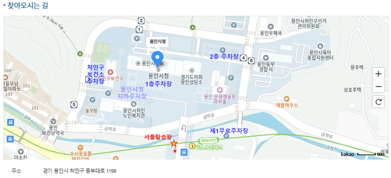 - 용인시청 주차장 : 처인구 중부대로 1199 ('용인시청 주차장' 검색)