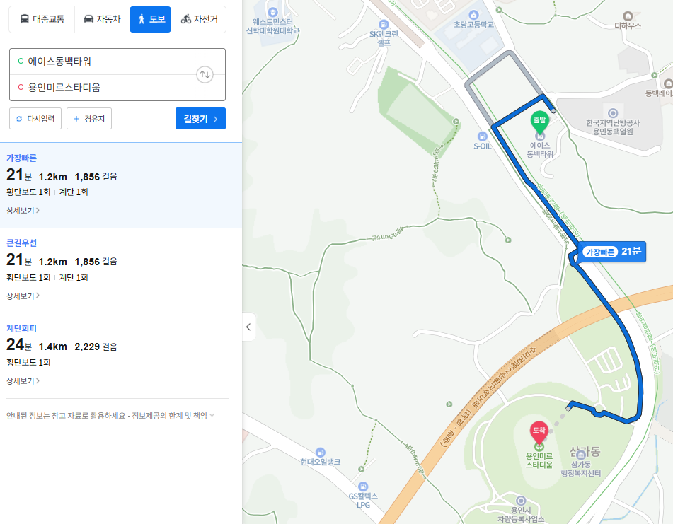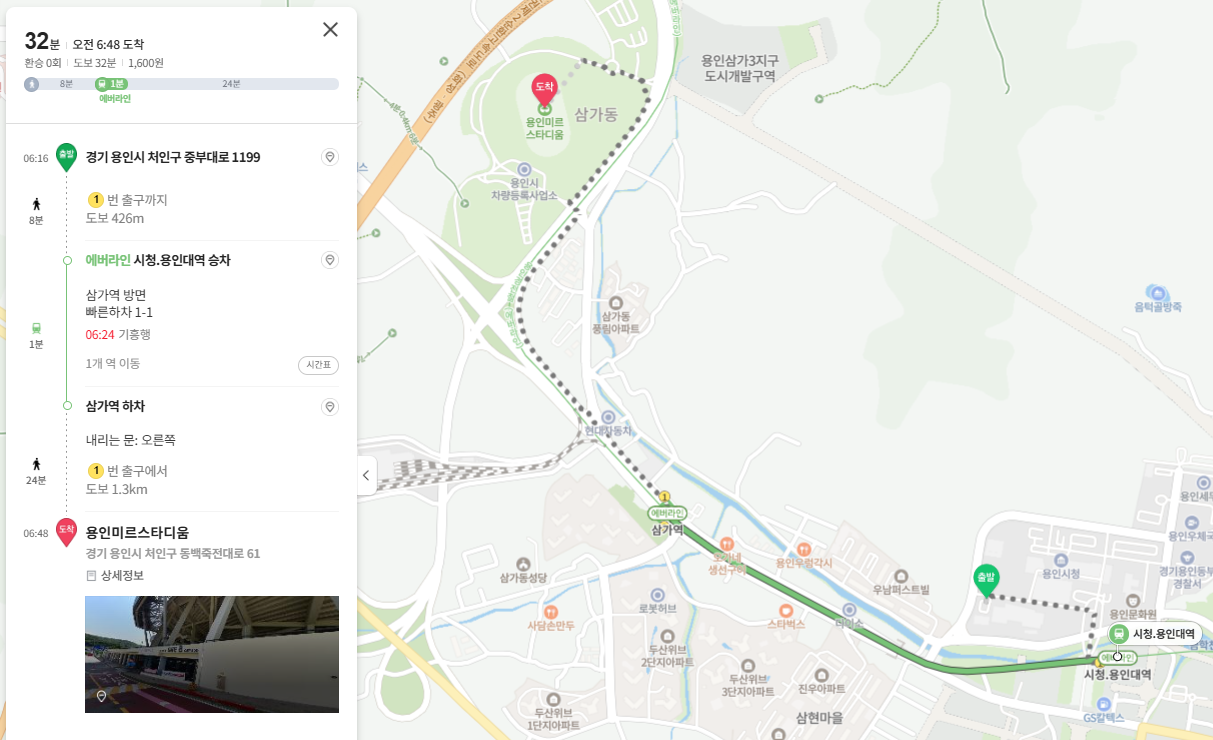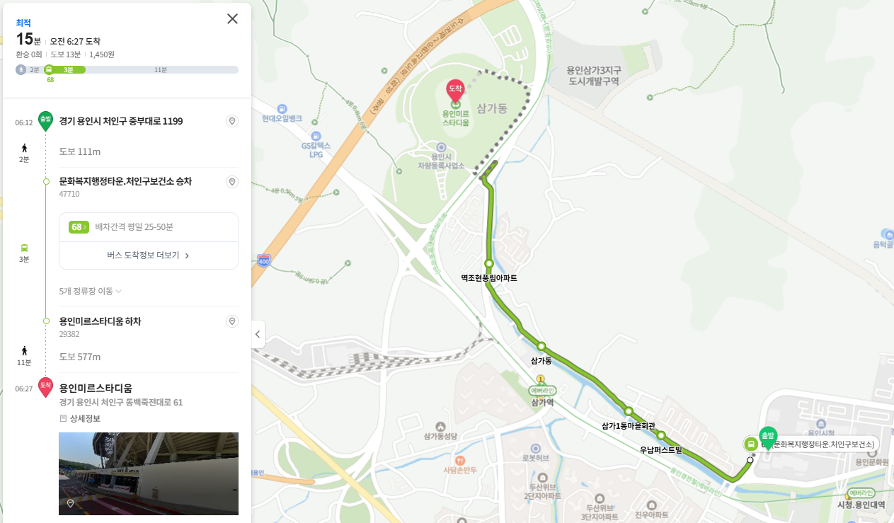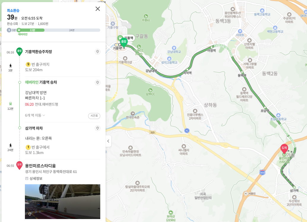 네이버 길찾기 바로가기(기흥역환승주차장 → 미르스타디움)