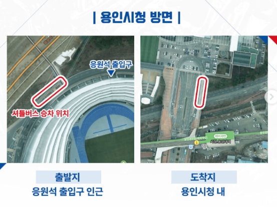 수원삼성블루윙즈 경기가 있을 때에는 다음과 같이 셔틀버스가 운영됩니다. 이번 이라크전 때에도 셔틀버스 운영이 예상됩니다. 기흥역 4번출구에서 탑승하고, 경기 종료 후에는 기흥역 5번출구에 하차합니다.
