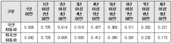 1. 사용연수가 9년 이상인 자동차