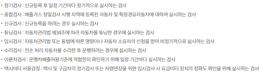 자동차검사 절차와 자동차검사의 목적에 대한 홍보자료도 참고하시기 바랍니다.(출처 : 한국교통안전공단)