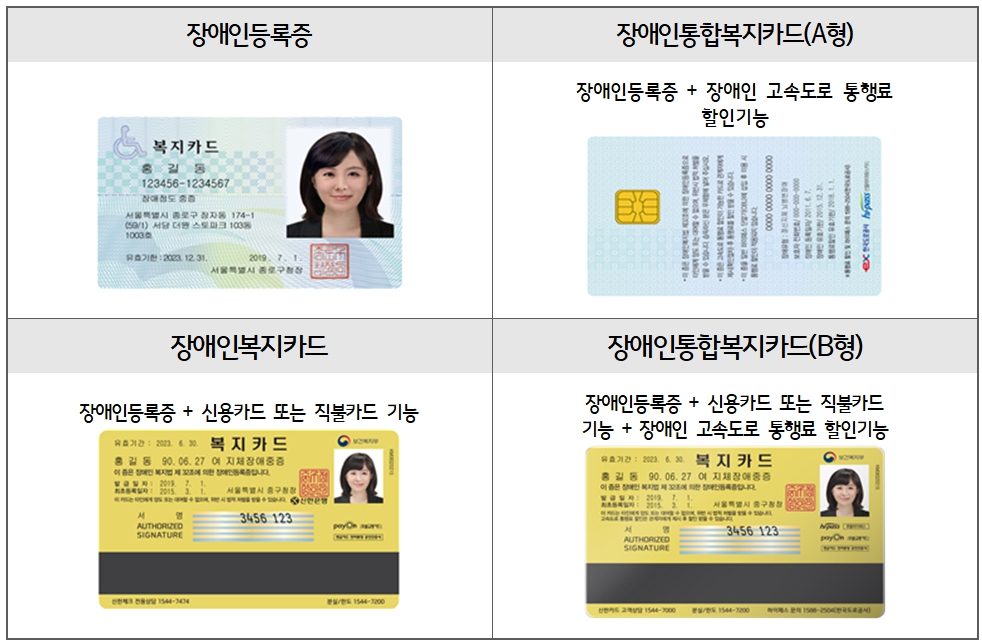 ※ 이 중에서 고속도로 통행료 할인을 받으려면 장애인통합복지카드 A형 또는 B형을 발급받아야 합니다 .