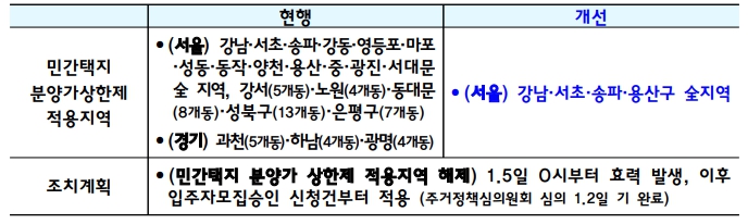 민간택지 분양가 상한제 적용지역 해제