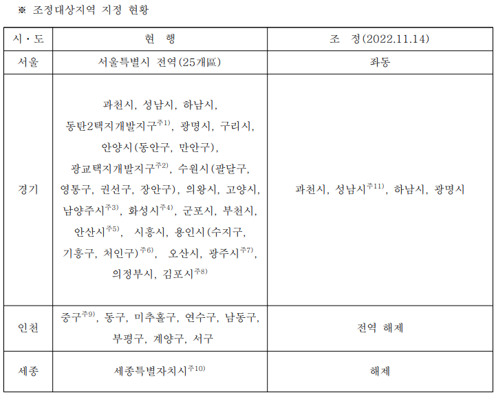 규제지역 지정현황('22.11.14 기준)