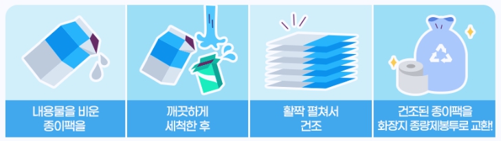 - 종이팩 준비 : 종이팩 내용물을 비운 후, 반드시 물로 헹구고 말린 후 교환