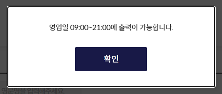 단, 영업일 09:00 ~ 21:00에 출력이 가능하니 참고하시기 바랍니다. 밤에 발급받으려다가 실패했습니다.