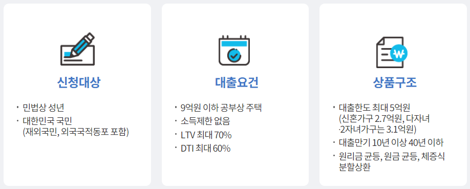 ※ 적격대출 (세부사항은 한국주택금융공사 홈페이지 참조)