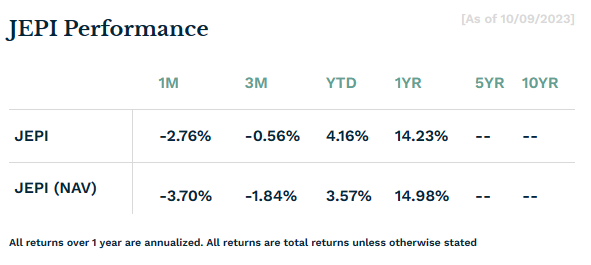 JEPI 차트, 수익률