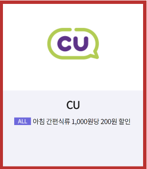 참고로 emart24(이마트24) 편의점도 GS편의점과 동일한 할인을 받으실 수 있으며, CU편의점은 아침 간편식류를 1,000원당 200원 할인 받으실 수 있습니다.